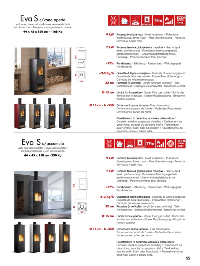 Quantità di legna consigliata - Quantity of wood suggested