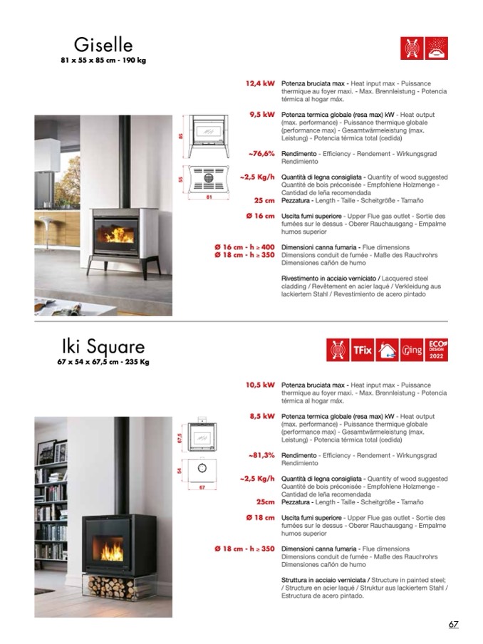 Uscita fumi superiore - Upper Flue gas outlet - Sortie des