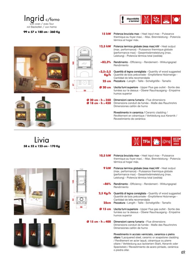 Quantità di legna consigliata - Quantity of wood suggested