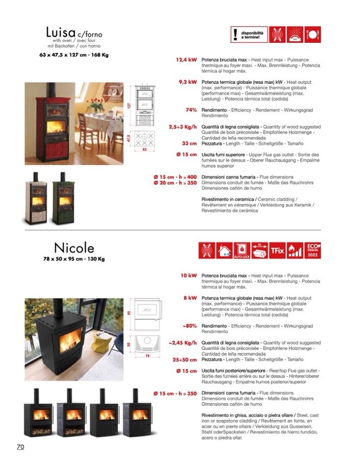Quantità di legna consigliata - Quantity of wood suggested