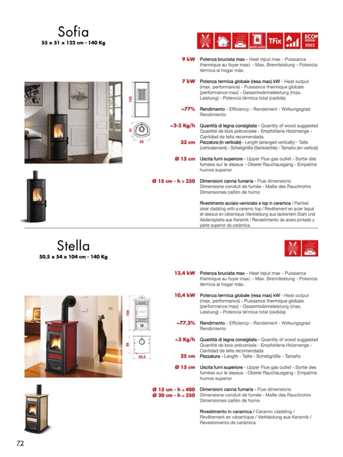 Quantità di legna consigliata - Quantity of wood suggested