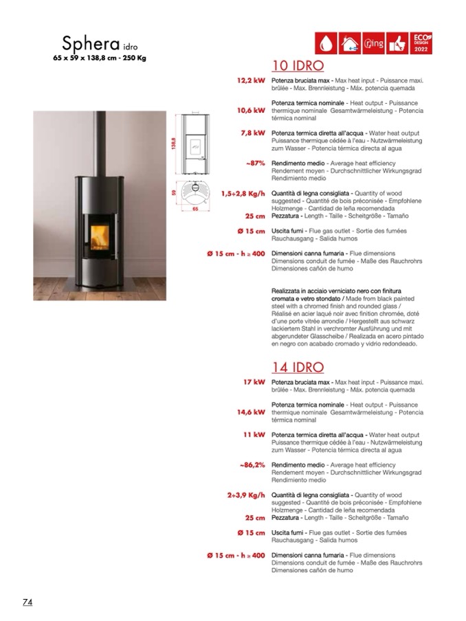 Quantità di legna consigliata - Quantity of wood