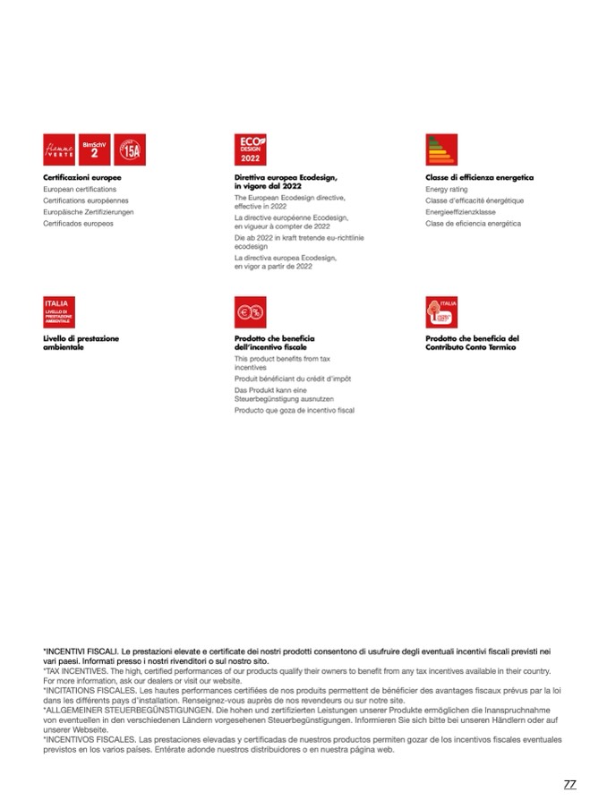 *INCENTIVI FISCALI. Le prestazioni elevate e certificate dei nostri prodotti consentono di usufruire degli eventuali incentivi fiscali previsti nei