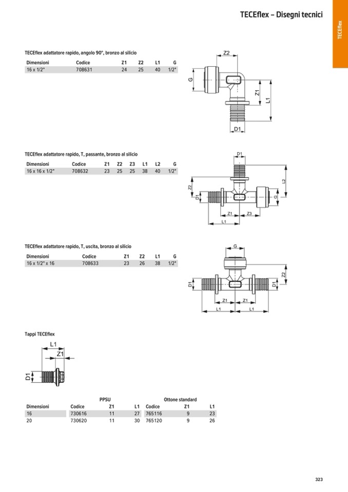 TECEflex adattatore rapido, T, passante, bronzo al silicio