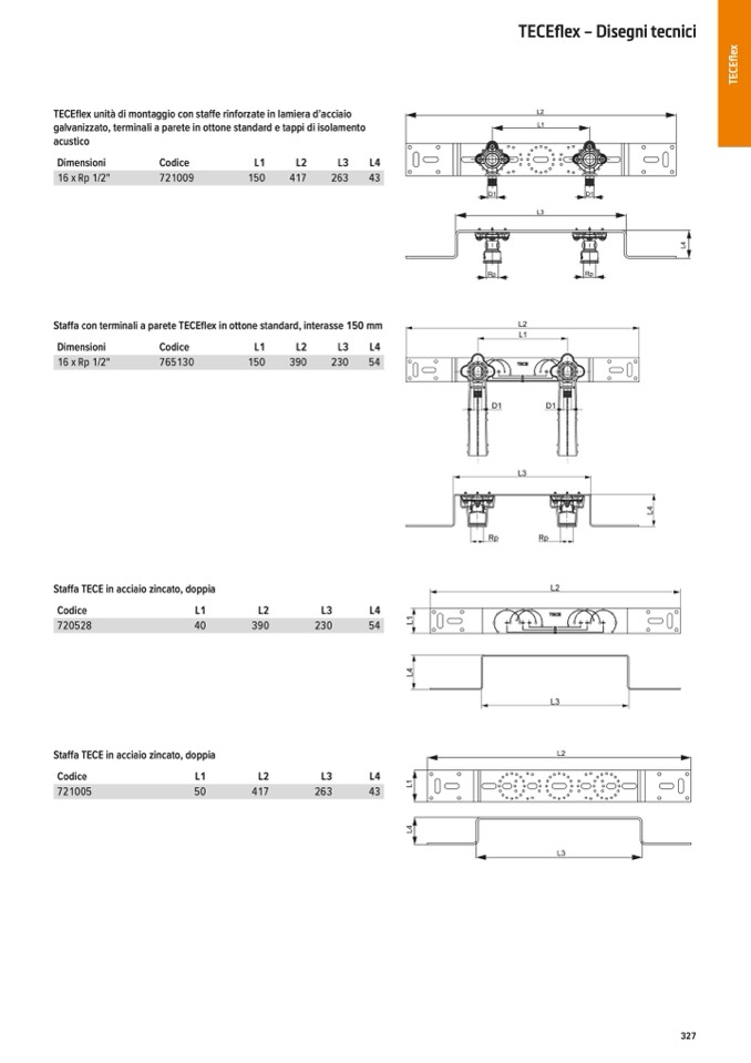 TECEflex unità di montaggio con staffe rinforzate in lamiera d’acciaio