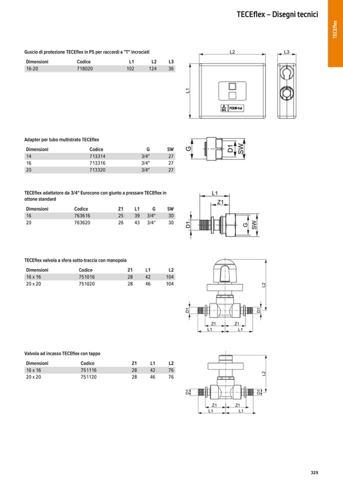 Guscio di protezione TECEflex in PS per raccordi a "T" incrociati