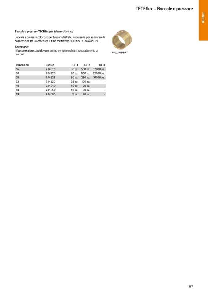 le boccole a pressare devono essere sempre ordinate separatamente ai