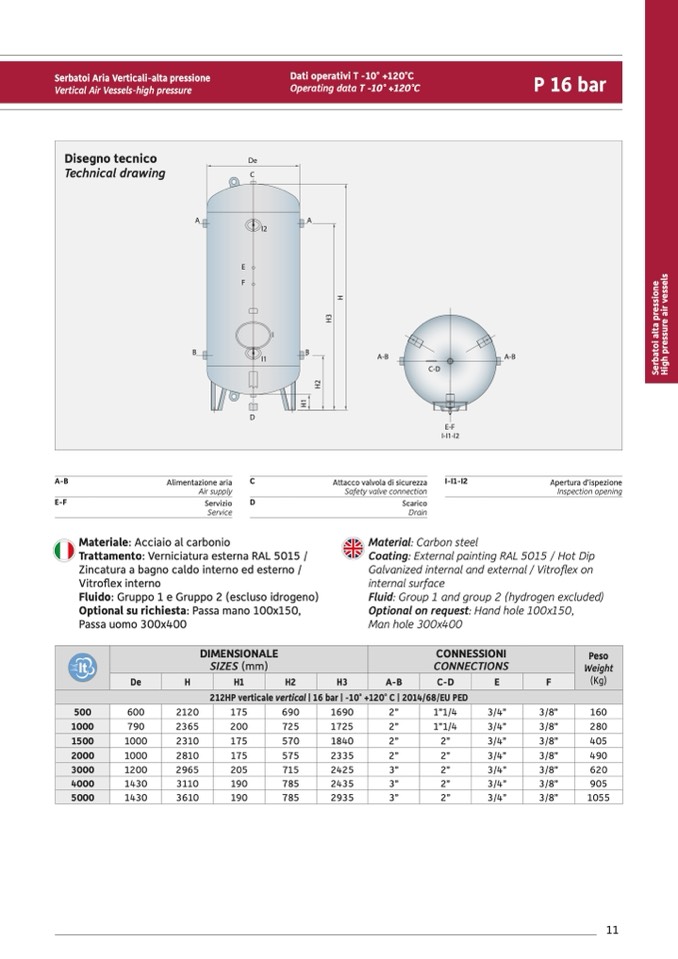 212HP verticale vertical | 16 bar | -10° +120° C | 2014/68/EU PED