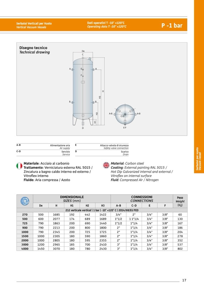 212 verticale vertical | 1 bar | -10° +120° C | 2014/68/EU PED