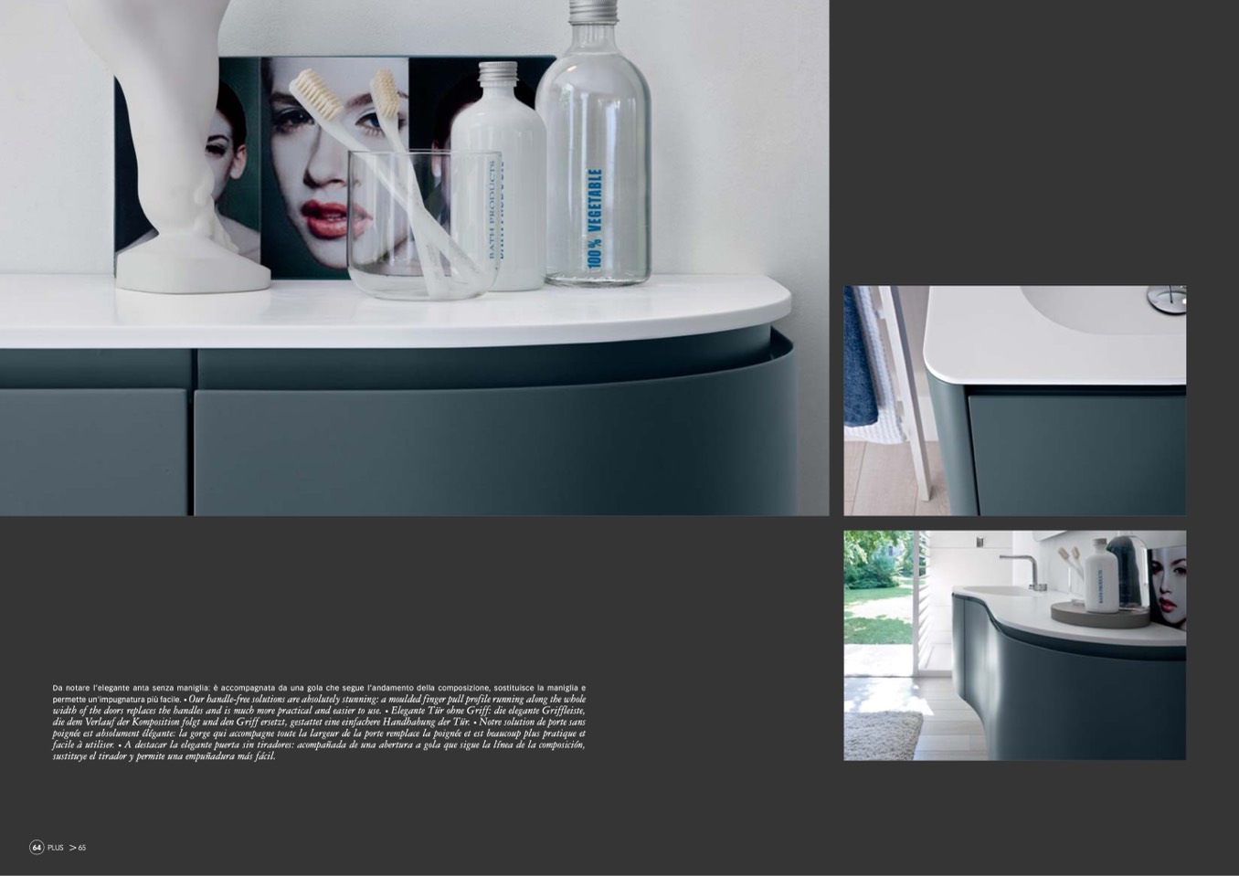 Da notare l’elegante anta senza maniglia: è accompagnata da una gola che segue l’andamento della composizione, sostituisce la maniglia e