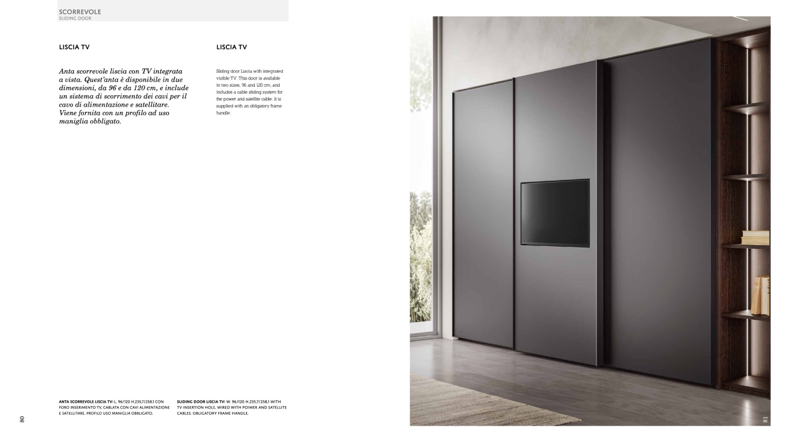 SLIDING DOOR LISCIA TV: W. 96/120 H.235,7/258,1 WITH