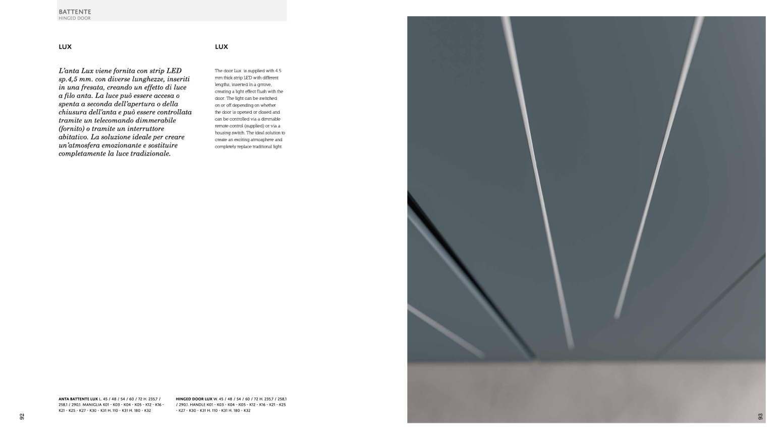 HINGED DOOR LUX W. 45 / 48 / 54 / 60 / 72 H. 235,7 / 258,1