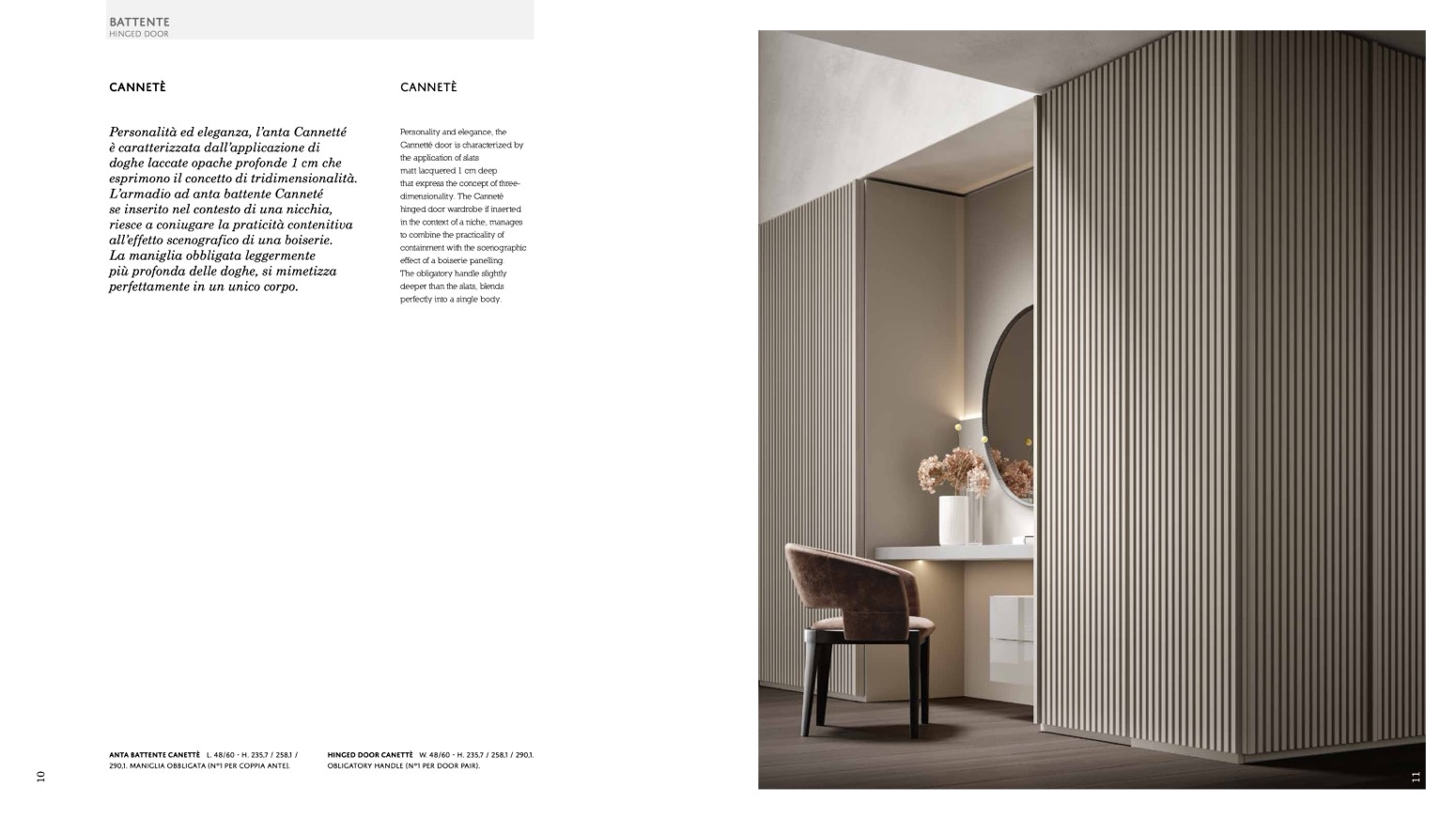 HINGED DOOR CANETTè W. 48/60 - H. 235,7 / 258,1 / 290,1.