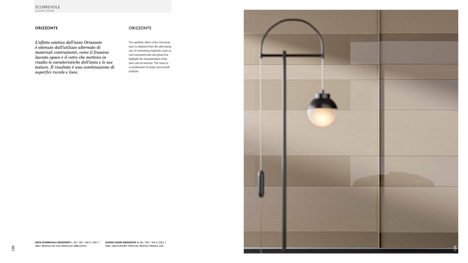 SLIDING DOOR ORIZZONTE W. 96 / 120 / 144 H. 235,7 /