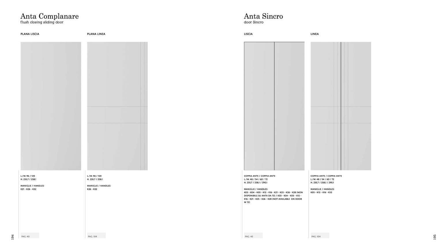 disponibile su anta da 72) / K03 - k04 - k05 - k12 -