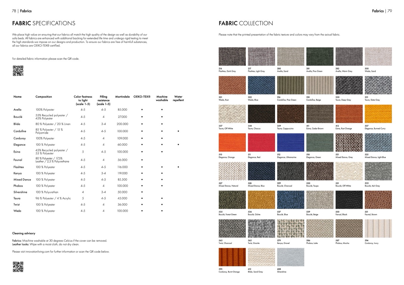 For detailed fabric information please scan the QR code.