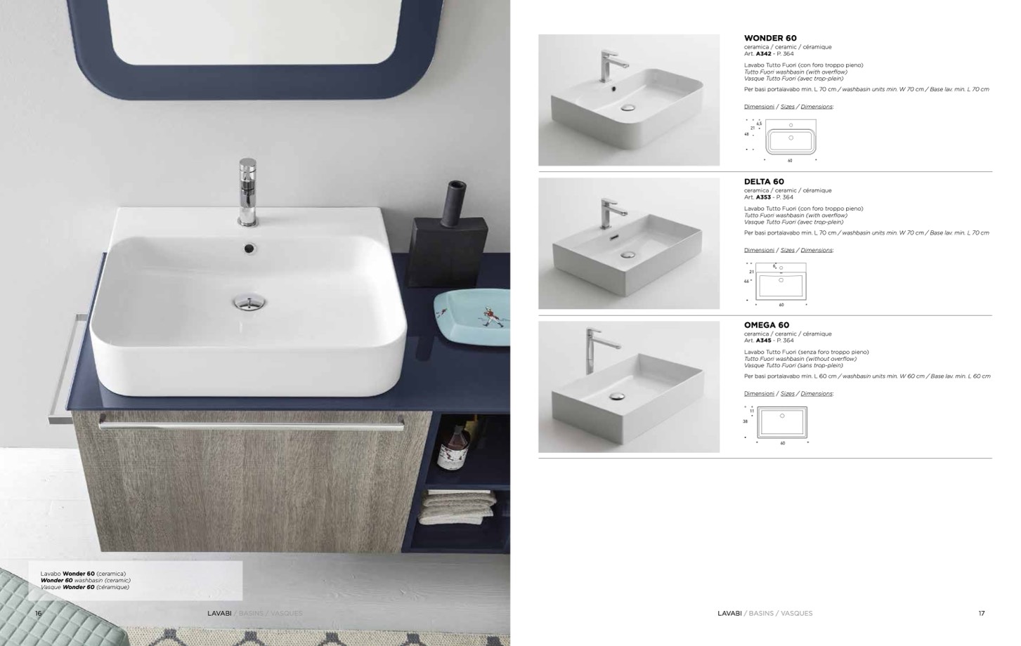 Per basi portalavabo min. L 60 cm / washbasin units min. W 60 cm / Base lav. min. L 60 cm