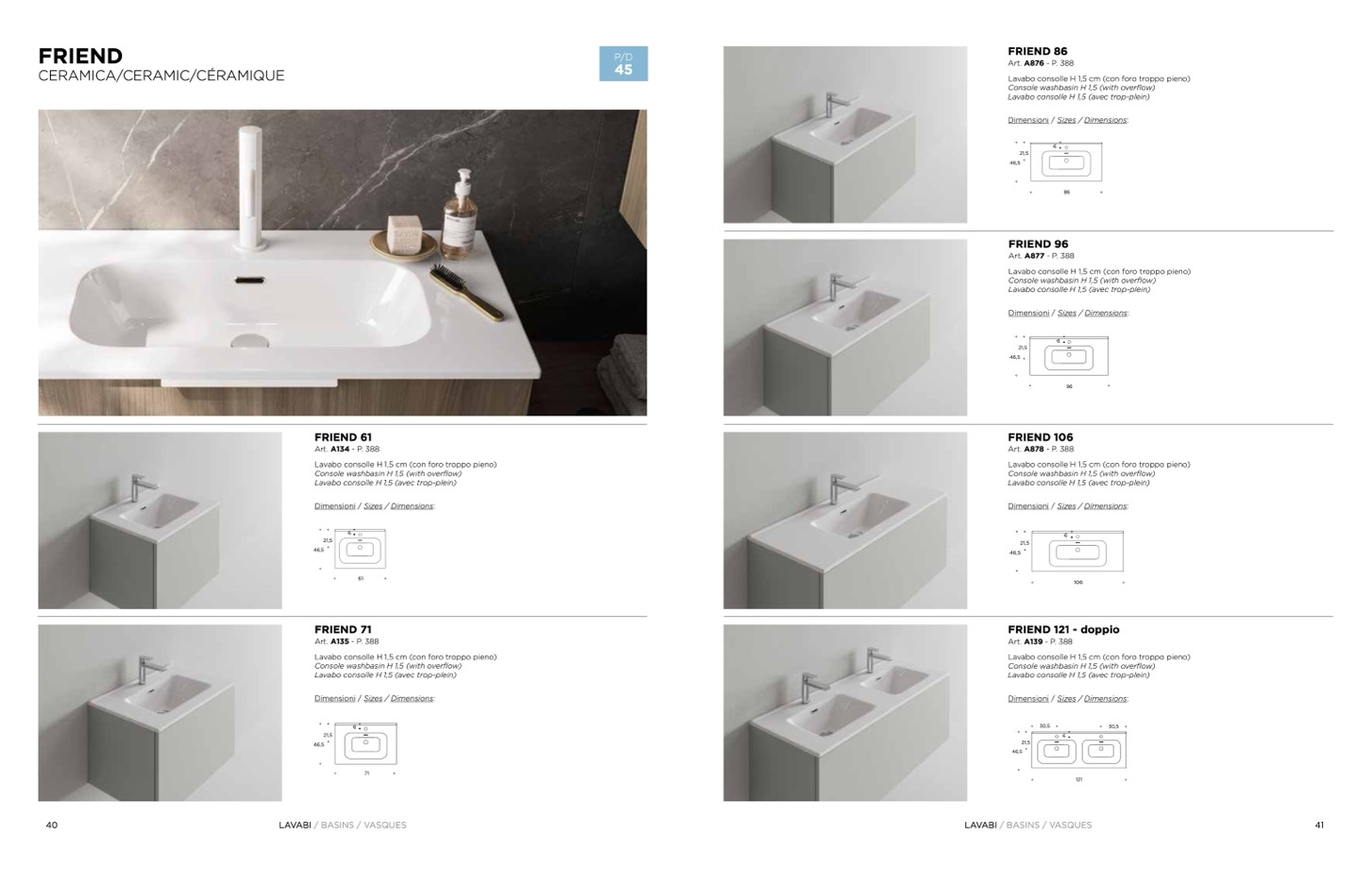 Lavabo consolle H 1,5 cm (con foro troppo pieno)