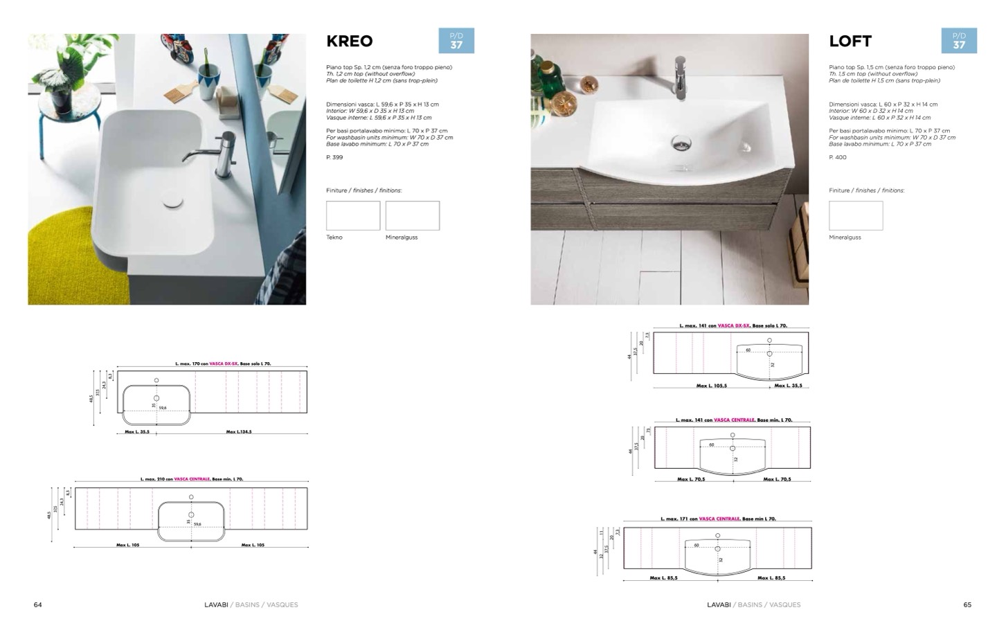 Per basi portalavabo minimo: L 70 x P 37 cm