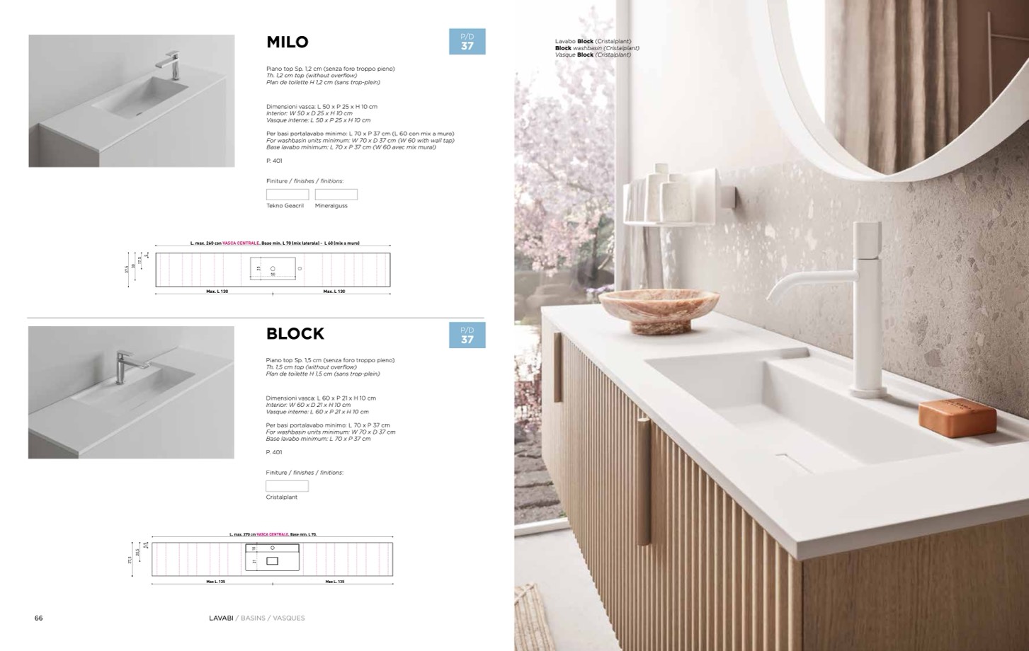 Per basi portalavabo minimo: L 70 x P 37 cm (L 60 con mix a muro)