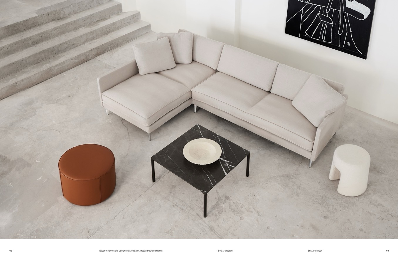 EJ295 Chaise Sofa. Upholstery: Anta 214. Base: Brushed chrome.