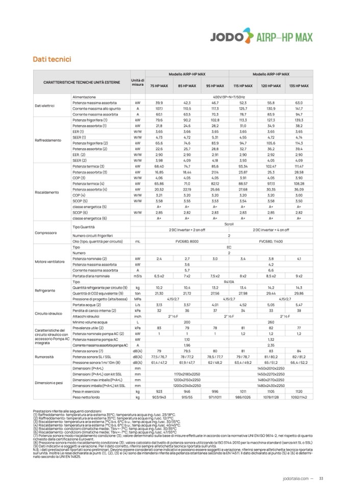 CARATTERISTICHE TECNICHE UNITÀ ESTERNE