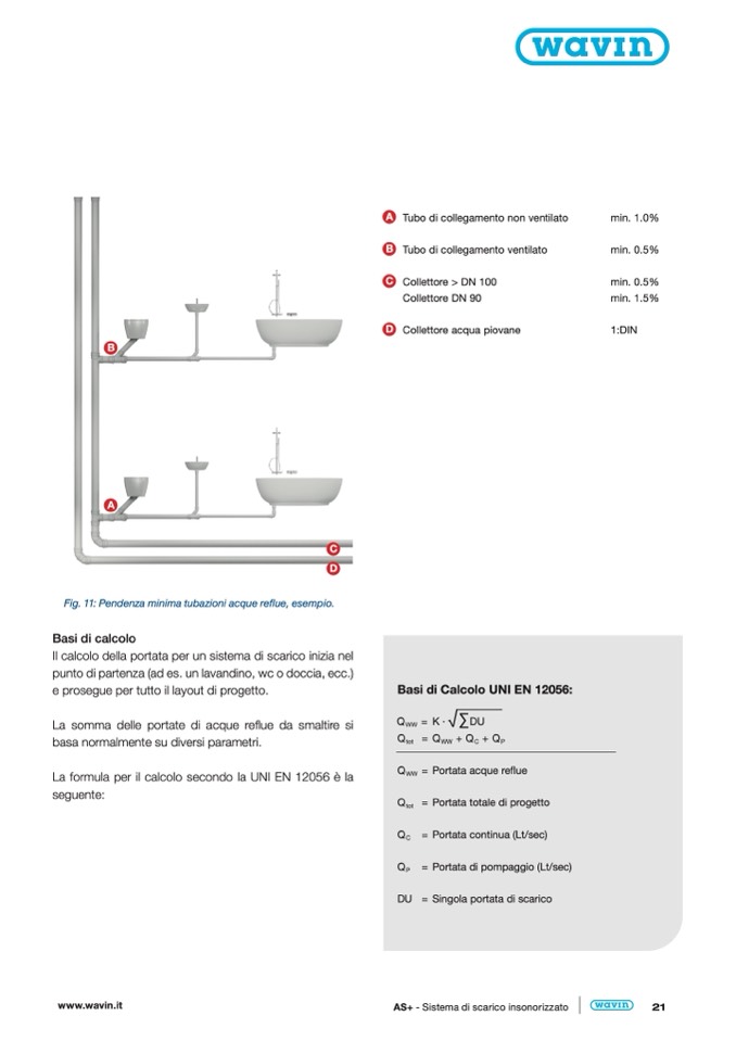 Fig. 11: Pendenza minima tubazioni acque reflue, esempio.