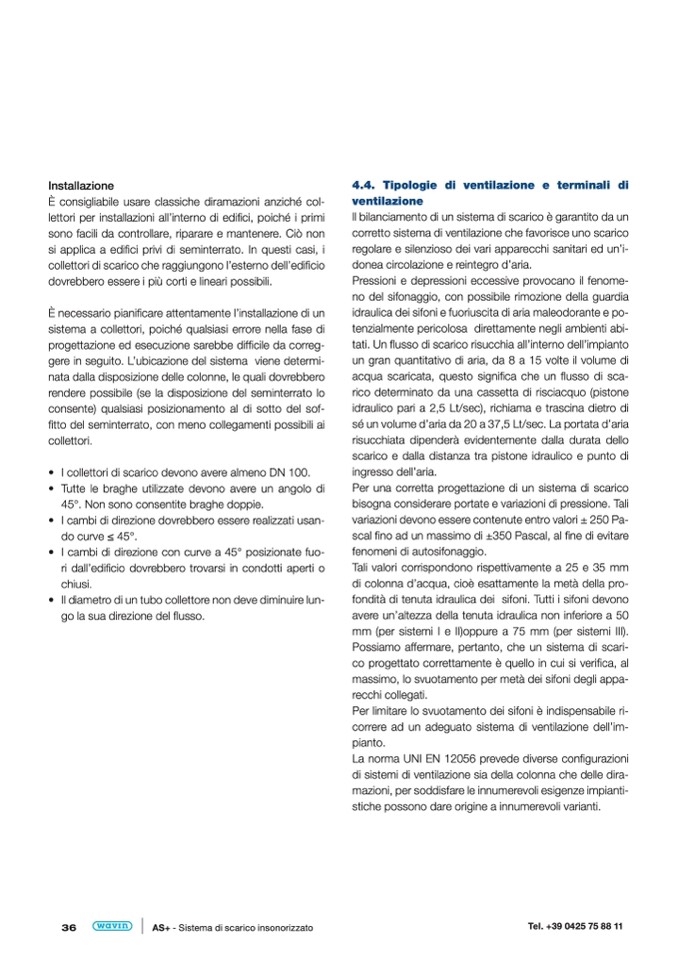 • Il diametro di un tubo collettore non deve diminuire lun-