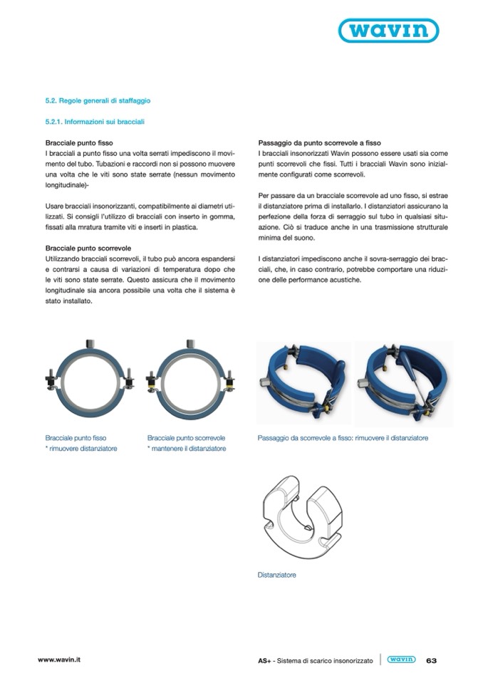 punti scorrevoli che fissi. Tutti i bracciali Wavin sono inizial-