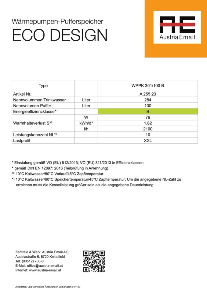 * Einstufung gemäß VO (EU) 812/2013; VO (EU) 811/2013 in Effizienzklassen