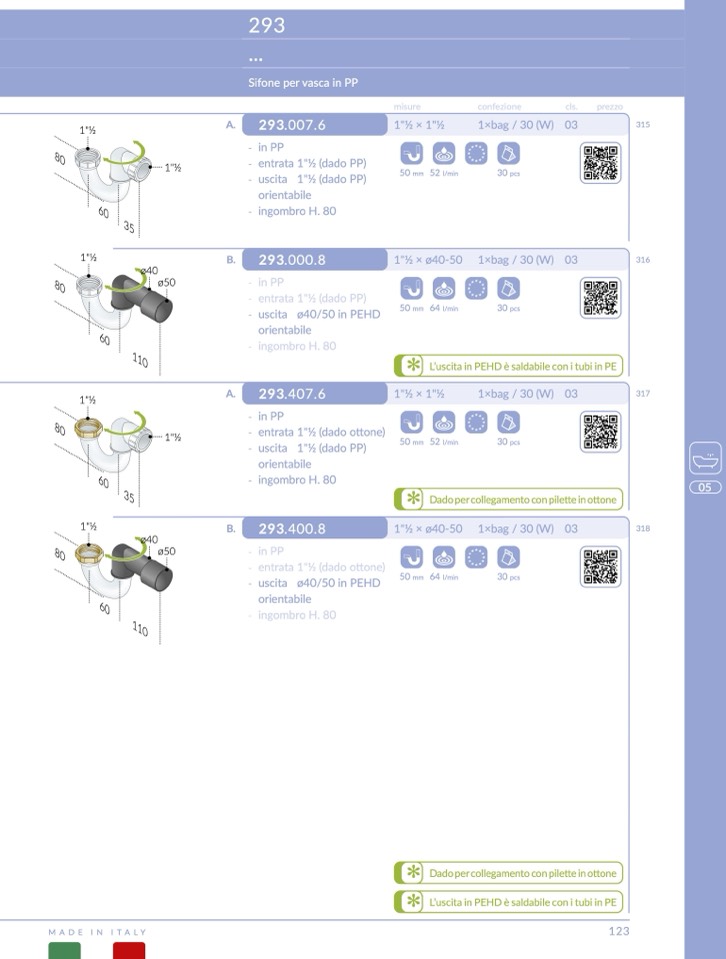 L’uscita in PEHD è saldabile con i tubi in P
