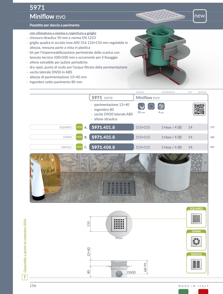con sifonatura a norma e copertura a griglia