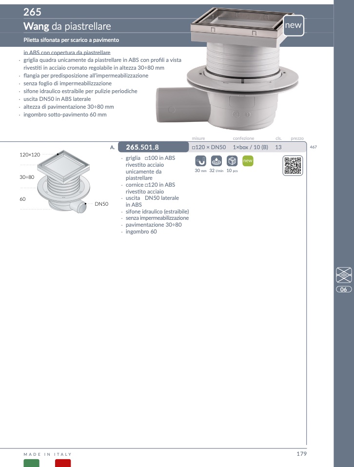 tta sifonata per scarico a paviment