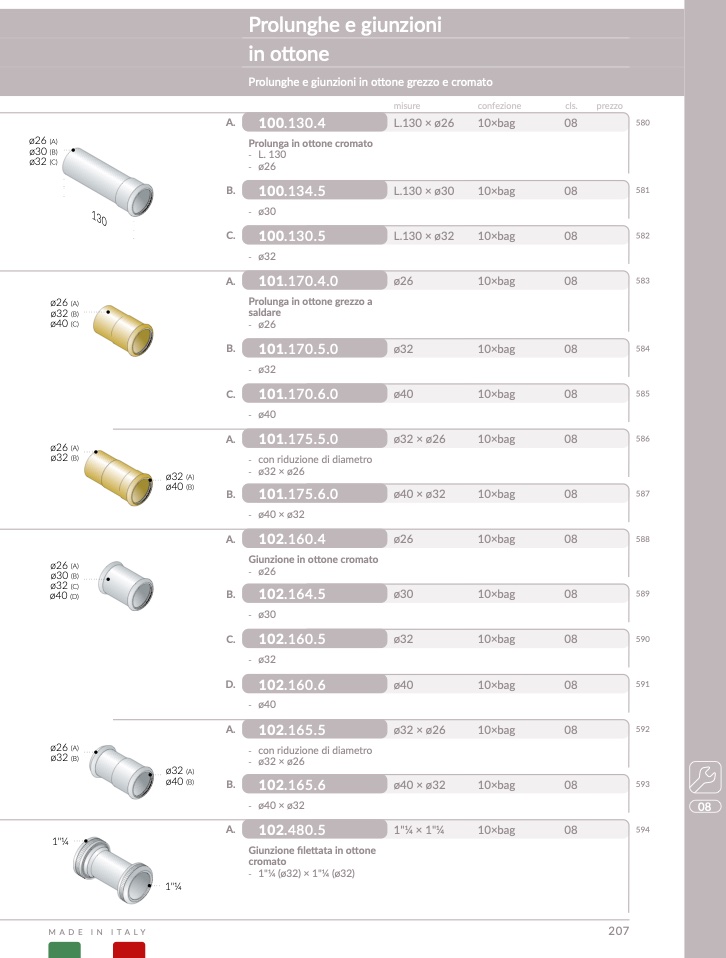 Prolunghe e giunzioni in ottone grezzo e cromat