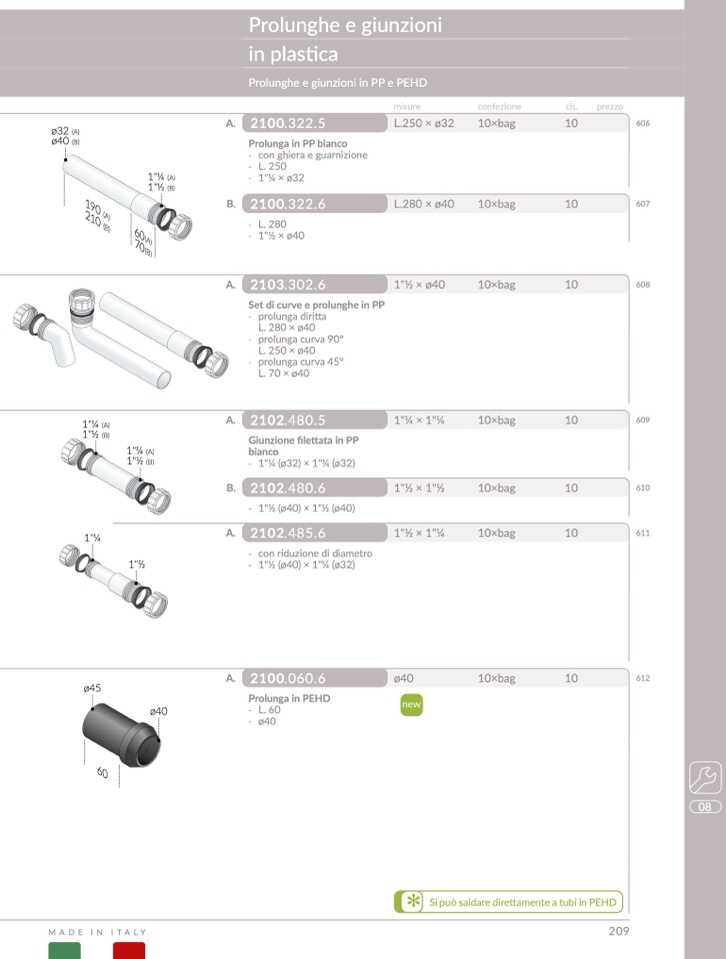 Prolunghe e giunzioni in PP e PEHD