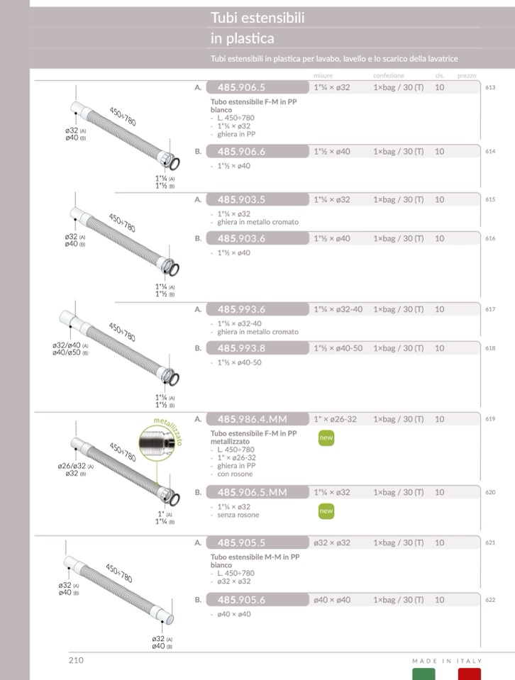 Tubo estensibile M-M in PP