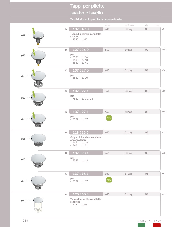 Tappo di ricambio per pilette