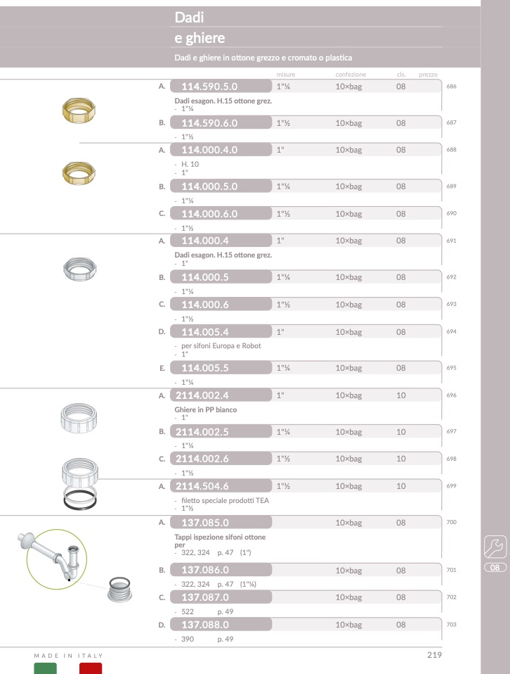 Dadi e ghiere in ottone grezzo e cromato o plastic
