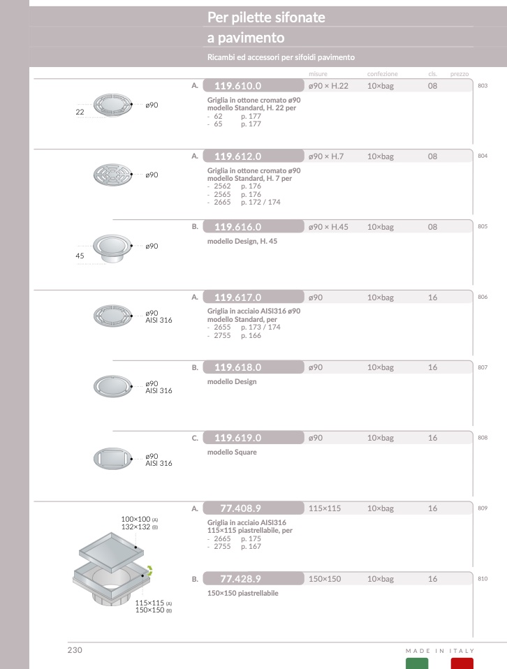 Ricambi ed accessori per sifoidi paviment