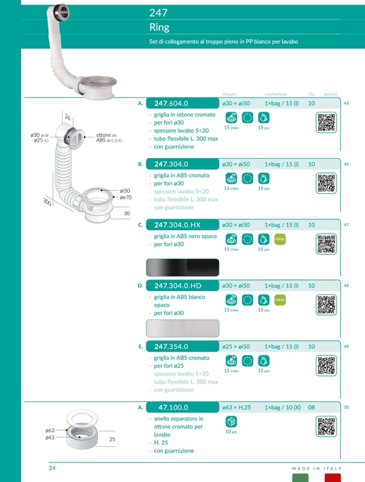 Set di collegamento al troppo pieno in PP bianco per lavab