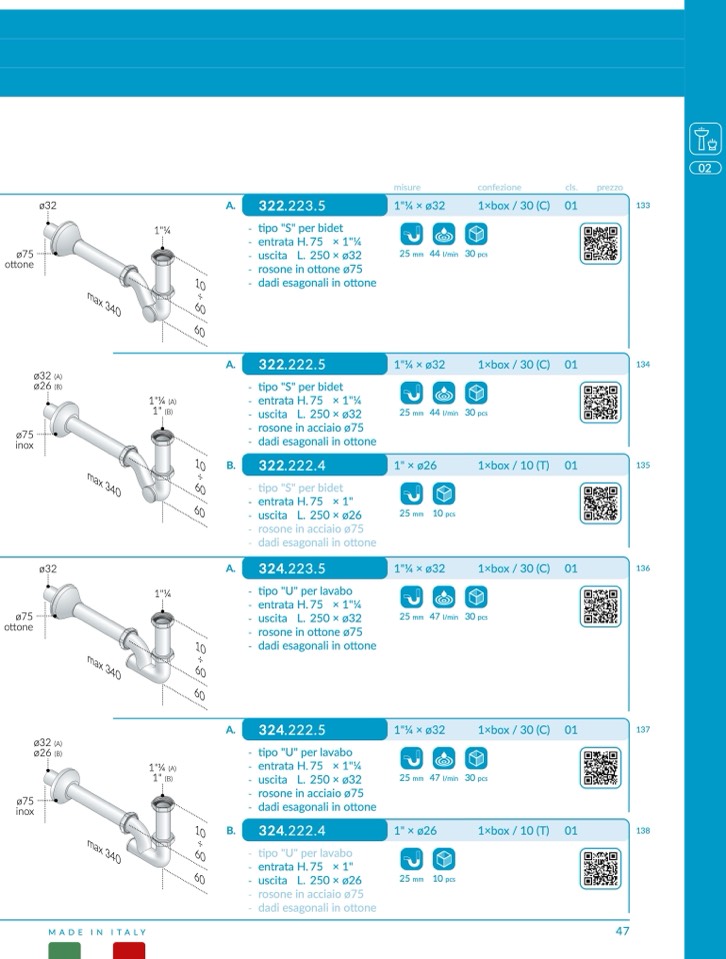 - tipo "S" per bidet