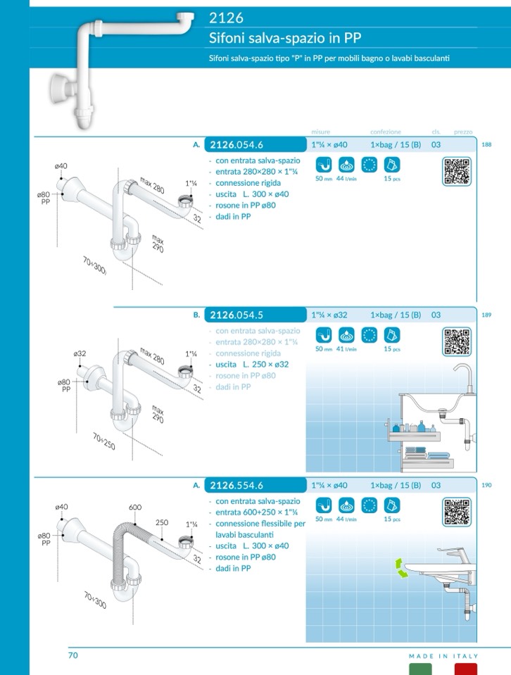 tipo "P" in PP per mobili bagno o lavabi basculan