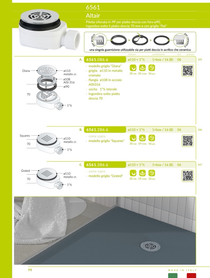 una singola guarnizione utilizzabile sia per piatti doccia in acrilico che ceramic