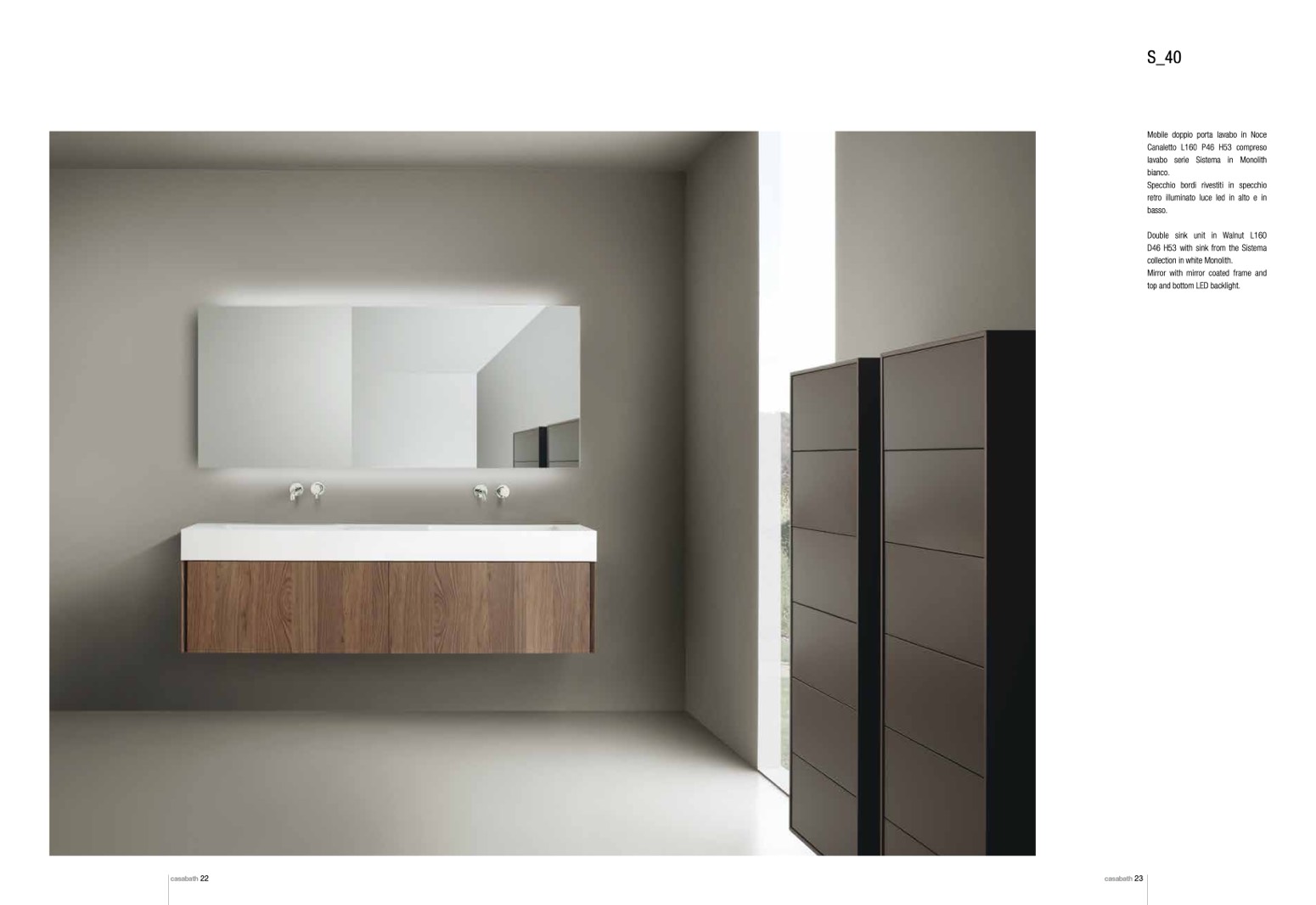 Double sink unit in Walnut L160