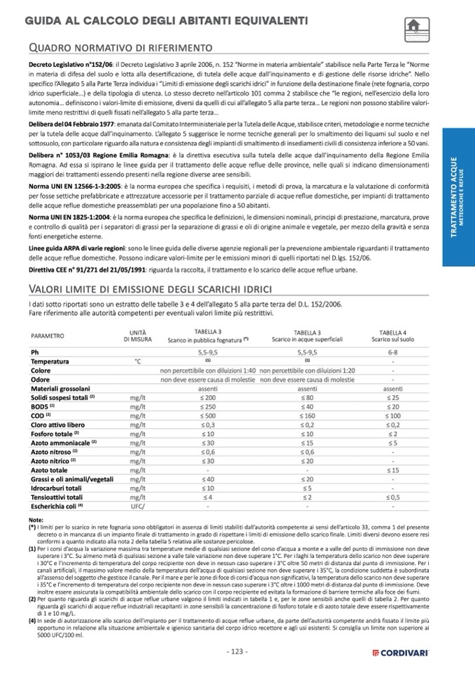 Romagna. Ad essa si ispirano le linee guida per il trattamento delle acque reflue delle province, nelle quali si indicano dimensionamenti