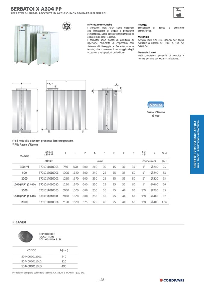 Per l’elenco completo consulta la sezione ACCESSORI e RICAMBI - pag. 171.