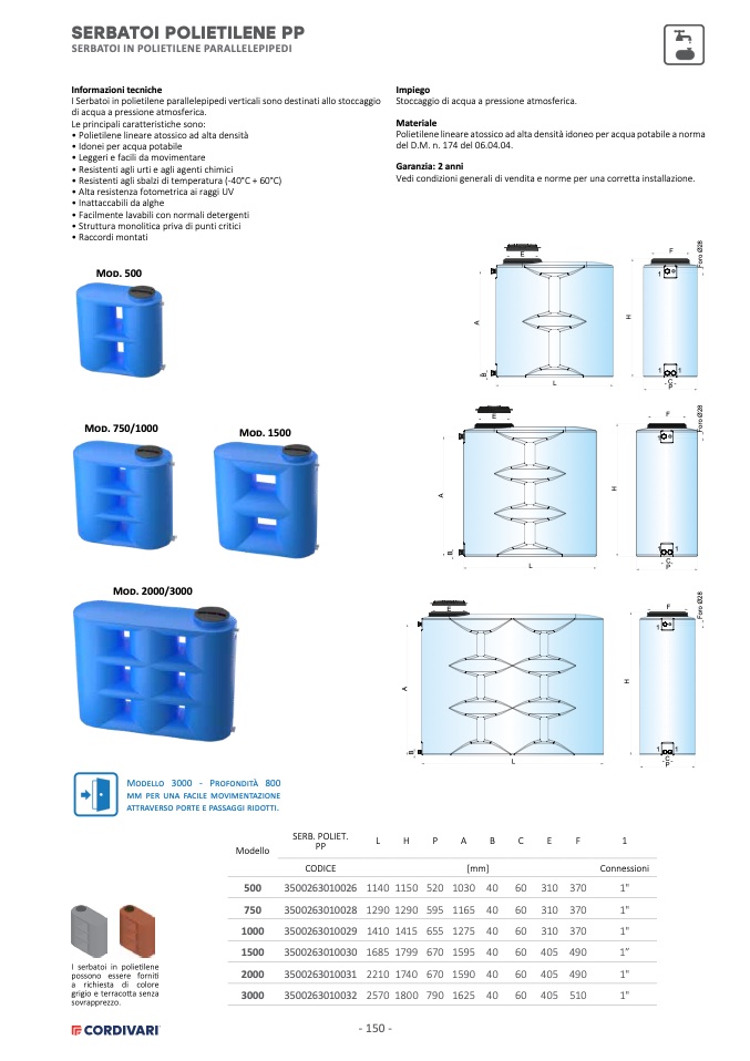 I Serbatoi in polietilene parallelepipedi verticali sono destinati allo stoccaggio