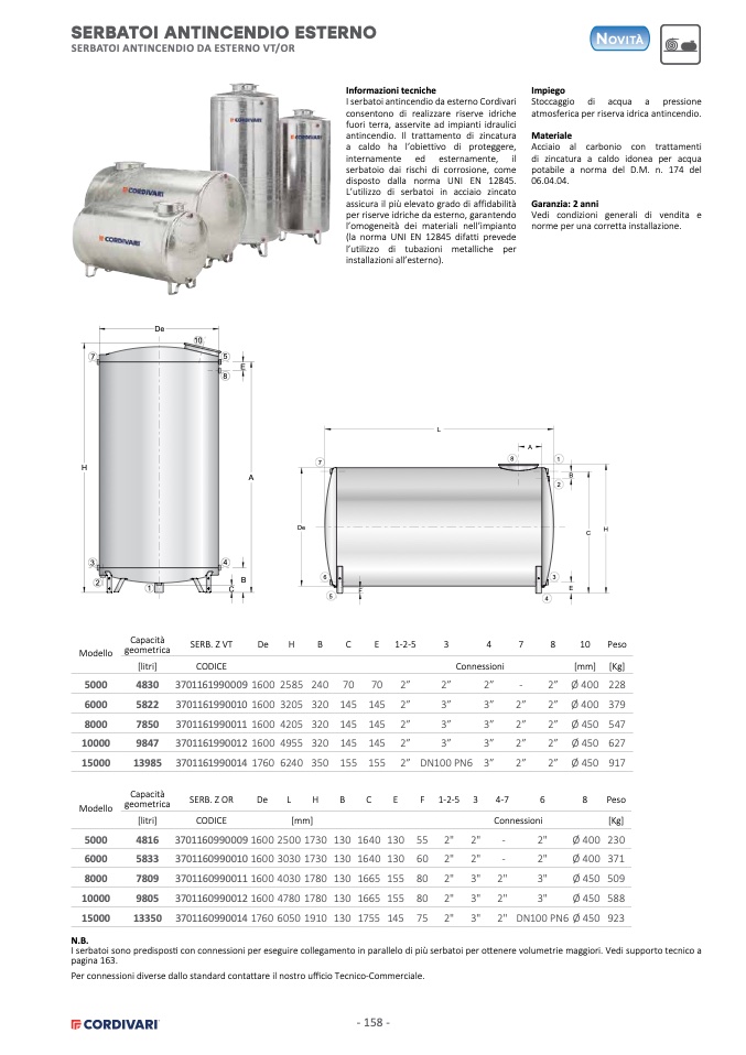 I serbatoi sono predisposti con connessioni per eseguire collegamento in parallelo di più serbatoi per ottenere volumetrie maggiori. Vedi supporto tecnico a