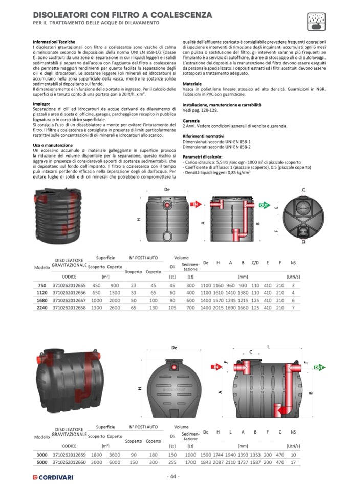 Dimensionati secondo UNI EN 858-2