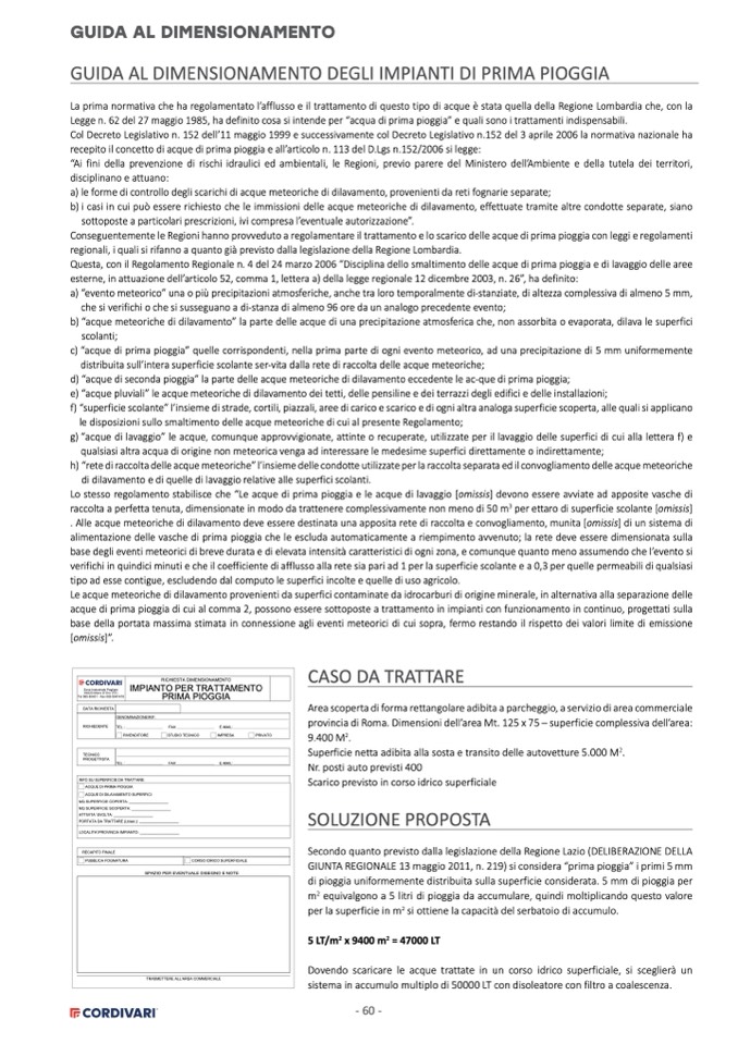 Questa, con il Regolamento Regionale n. 4 del 24 marzo 2006 “Disciplina dello smaltimento delle acque di prima pioggia e di lavaggio delle aree